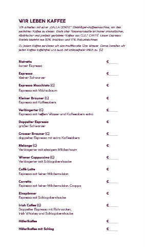 jeden Kaffee koffeinfrei und auch mit laktosefreier Milch zu. (G)